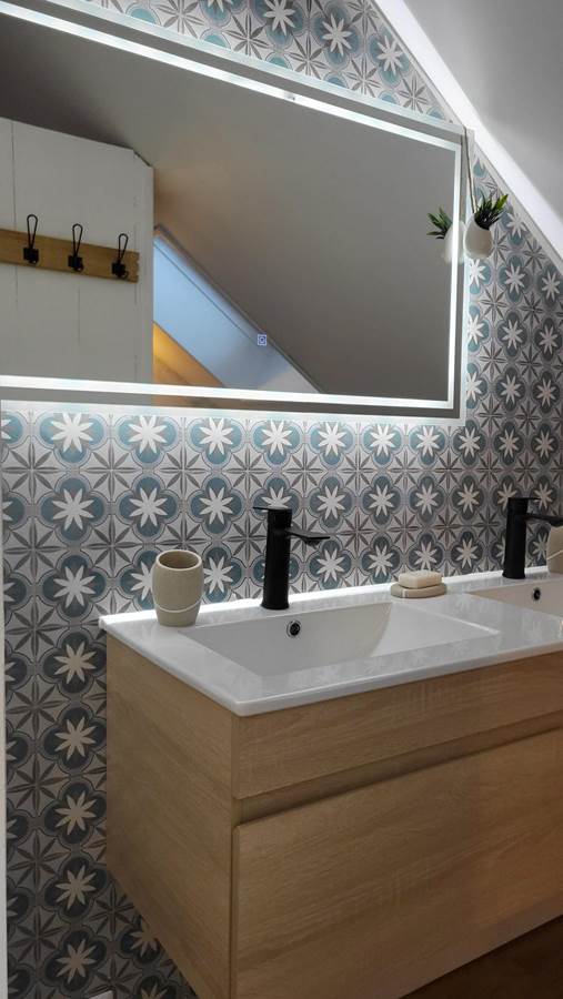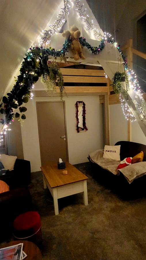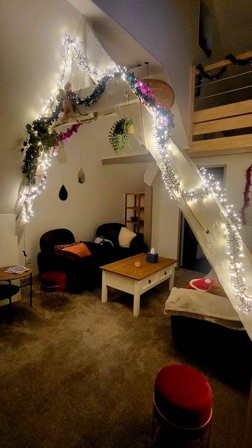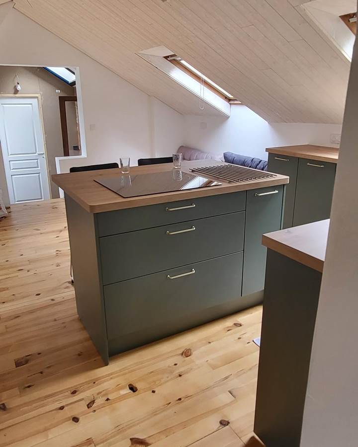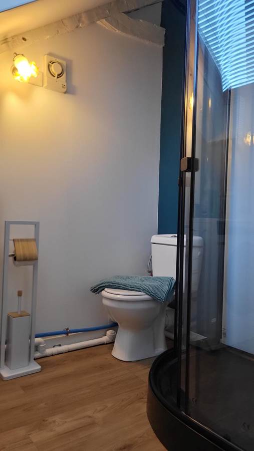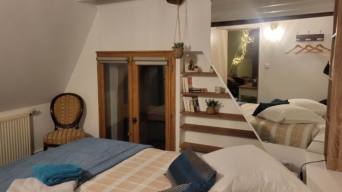 It consists of a large open-plan living room/kitchen, fully equipped, a lounge and a mezzanine games room with foosball, 3 bedrooms and a bathroom and toilet.